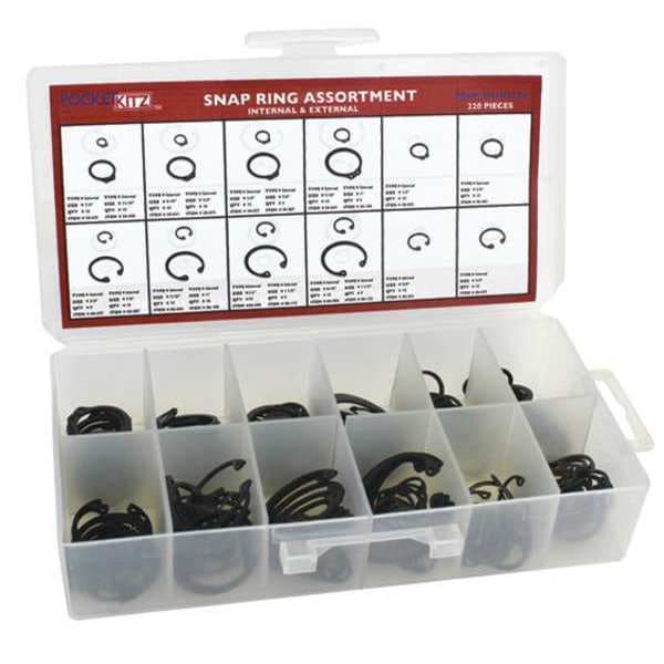Internal and External Retaining Ring Assortment, 223 Pieces, 20 Sizes