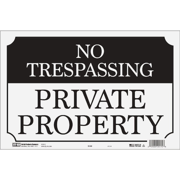 9 x 14 Black/White Aluminum Sign No Trespassing/Private Property