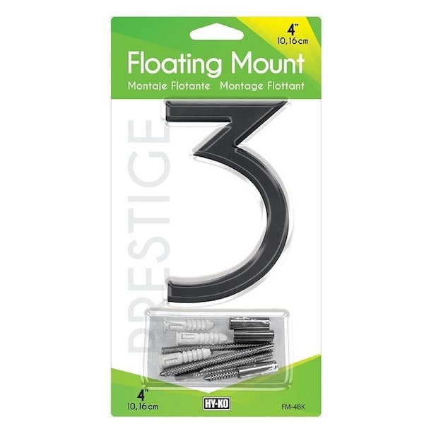 HYKO House Number, Character 3, Character Height 4 in, Character Color Black, Floating Mounting, Dimensions 4 x 748 in