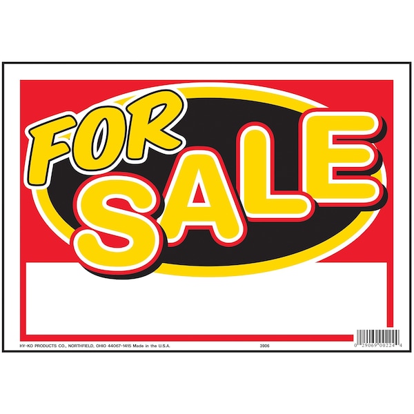 For Sale Sign 8.5" x 12.5", 10PK, A00224