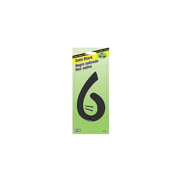 HYKO House Number, Character 6, Character Height 4 in, Character Color Black, Zinc, Includes Nail