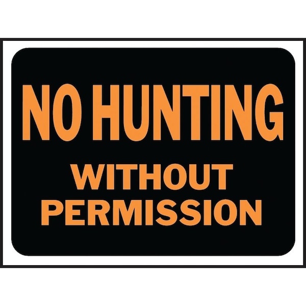 Hy-Glo Series Identification Sign, No Hunting Without Permission, Fluorescent Orange Legend, Plastic