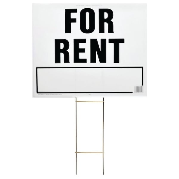 Lawn Sign, Rectangular, FOR RENT, Black Legend, White Background, Plastic, 24 in W x 19 in H Dimensions