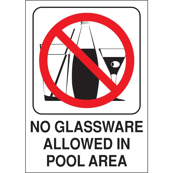 No Glassware Allowed In Pool Sign 10" x 14", 5PK