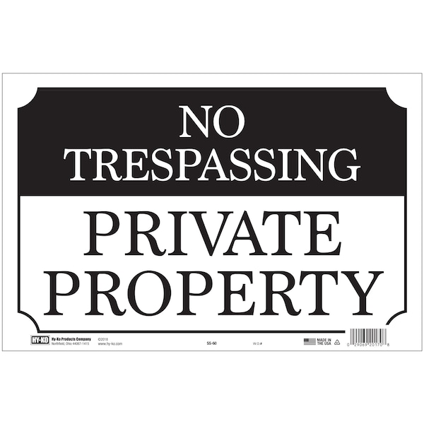 No Trespassing Black/White Sign 9.25" x 14", 12PK