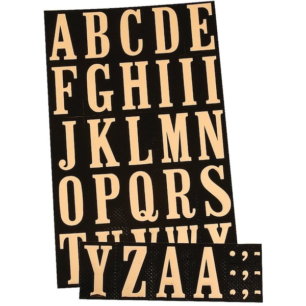 Packaged Letter Set, 1-3/4 in H Character, Gold Character, Black Background, Mylar