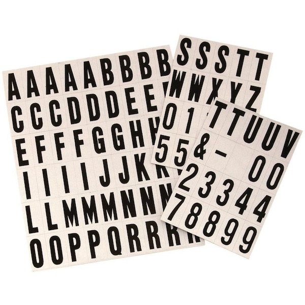 Packaged Number and Letter Set, 34 in H Character, Black Character, Silver Background, Vinyl