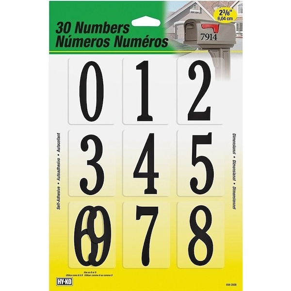 Packaged Number Set, 2-3/8 in H Character, Black Character, Plastic