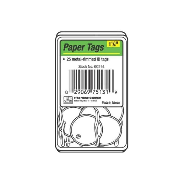 25 Pack, 114, White Paper ID Tag With Split Ring, Metal Rimmed ID Tags, Plastic Hang Box