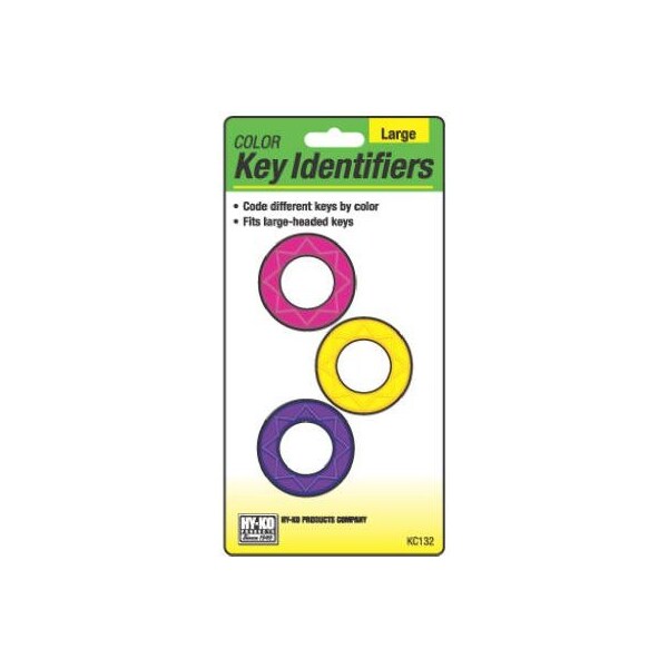 3 Pack, Large Key Identifiers, Keeps Similar Keys Separated By Color, Will Stretch To Fit Over Most Large Key Heads For Easy Color Identification, Rubber Like Vinyl Resists Cracking Color Fading, Superior Material, Pliable Won't Break, Assorted Colors, Carded