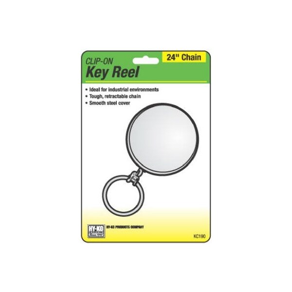 Chrome, Clip On, Key Reel With 24 Retractable Chain, Ideal For Industrial Environments, Tough, Retractable Chain, Smooth Steel Cover, Carded