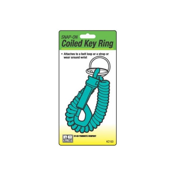 Coiled Key Ring With Plastic Snap, Attaches To A Belt Loop Or A Strap Or Wear Around Wrist, Carded