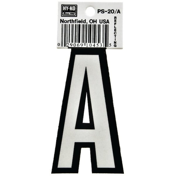 Reflective Letter, Character: A, 3-1/4 in H Character, Black/White Character, Vinyl