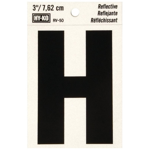 Reflective Letter, Character: H, 3 in H Character, Black Character, Silver Background, Vinyl