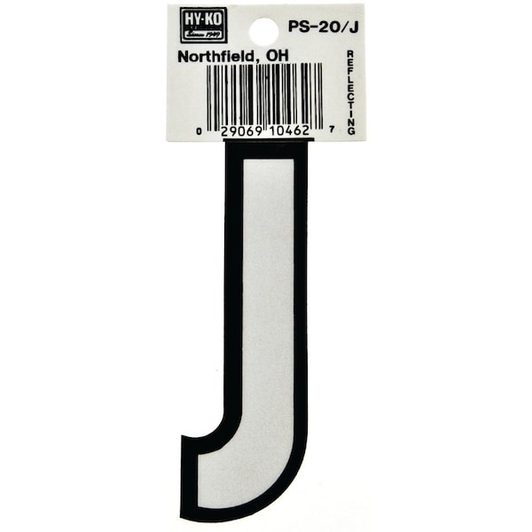 Reflective Letter, Character: J, 3-1/4 in H Character, Black/White Character, Vinyl