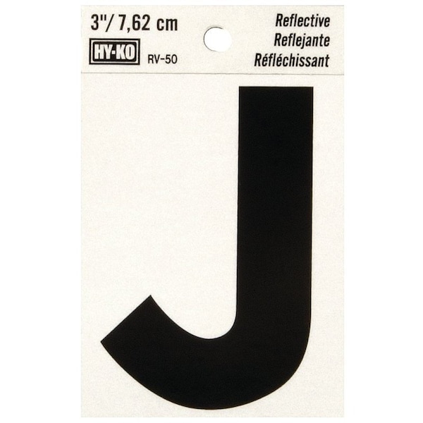 Reflective Letter, Character: J, 3 in H Character, Black Character, Silver Background, Vinyl