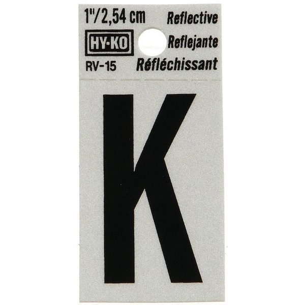 Reflective Letter, Character: K, 1 in H Character, Black Character, Silver Background, Vinyl
