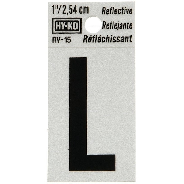 Reflective Letter, Character: L, 1 in H Character, Black Character, Silver Background, Vinyl