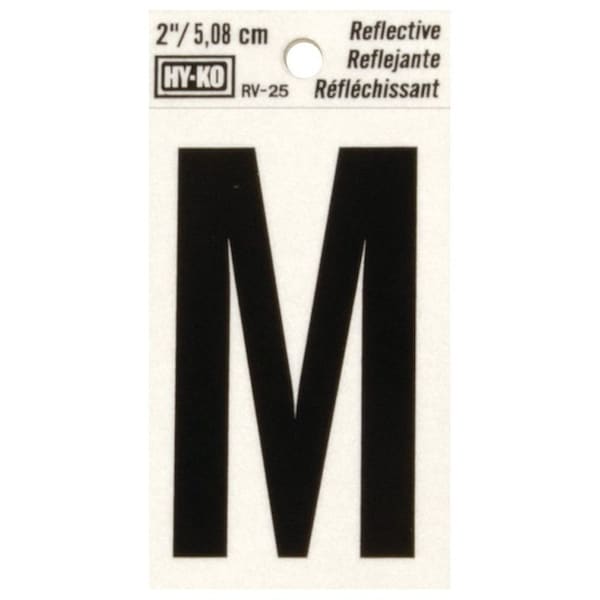 Reflective Letter, Character: M, 2 in H Character, Black Character, Silver Background, Vinyl