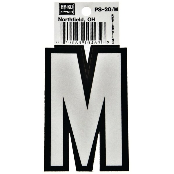 Reflective Letter, Character: M, 3-1/4 in H Character, Black/White Character, Vinyl