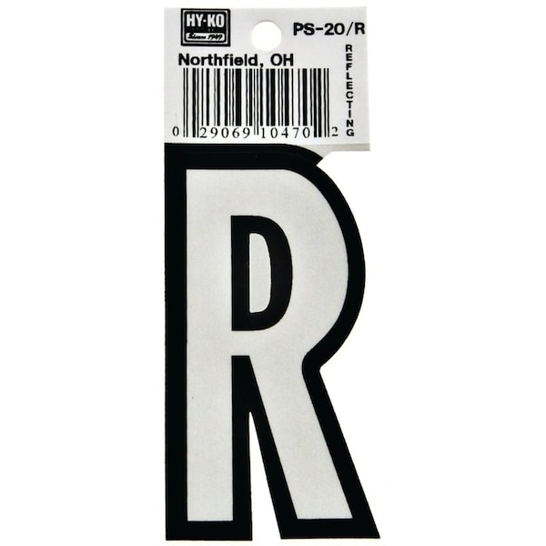 Reflective Letter, Character: R, 3-1/4 in H Character, Black/White Character, Vinyl