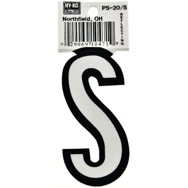 Reflective Letter, Character: S, 3-1/4 in H Character, Black/White Character, Vinyl