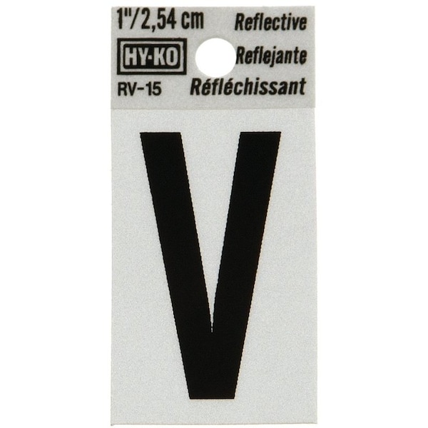 Reflective Letter, Character: V, 1 in H Character, Black Character, Silver Background, Vinyl