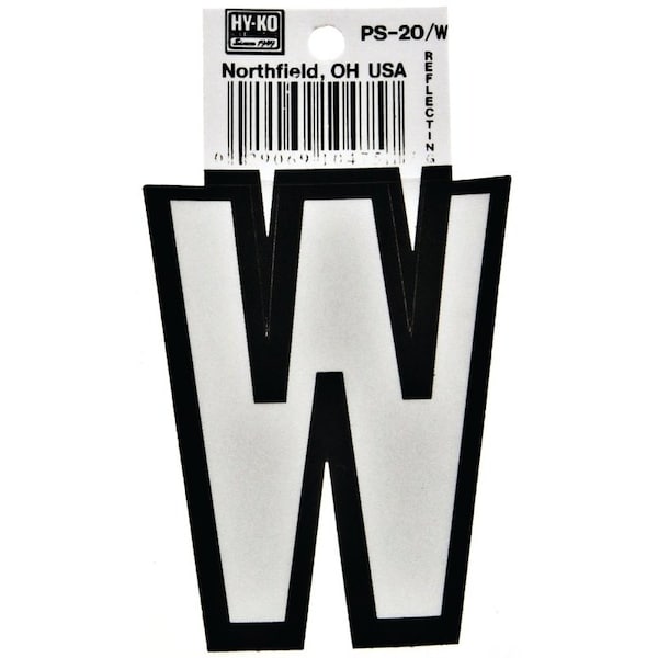 Reflective Letter, Character: W, 3-1/4 in H Character, Black/White Character, Vinyl