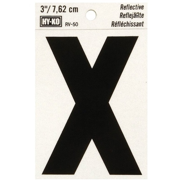 Reflective Letter, Character: X, 3 in H Character, Black Character, Silver Background, Vinyl
