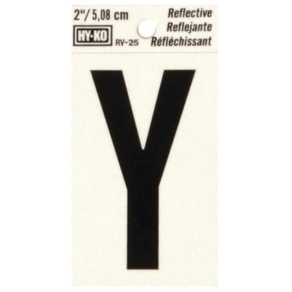 Reflective Letter, Character: Y, 2 in H Character, Black Character, Silver Background, Vinyl