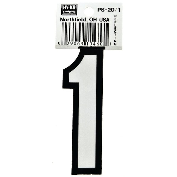 Reflective Sign, Character: 1, 3-1/4 in H Character, Black/White Character, Vinyl