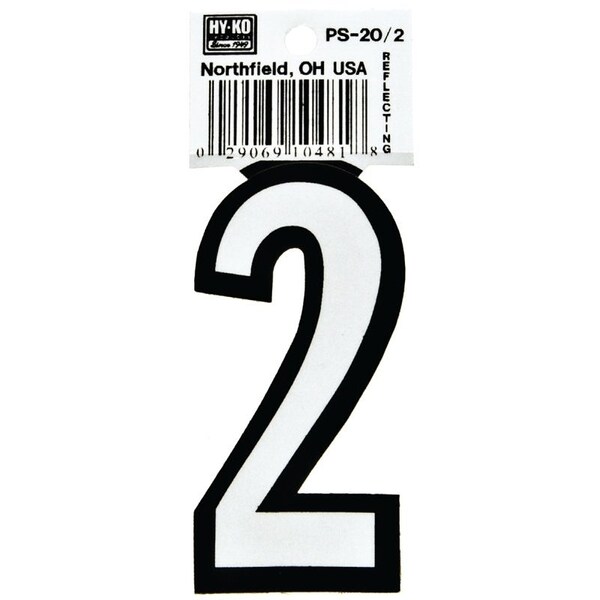 Reflective Sign, Character: 2, 3-1/4 in H Character, Black/White Character, Vinyl