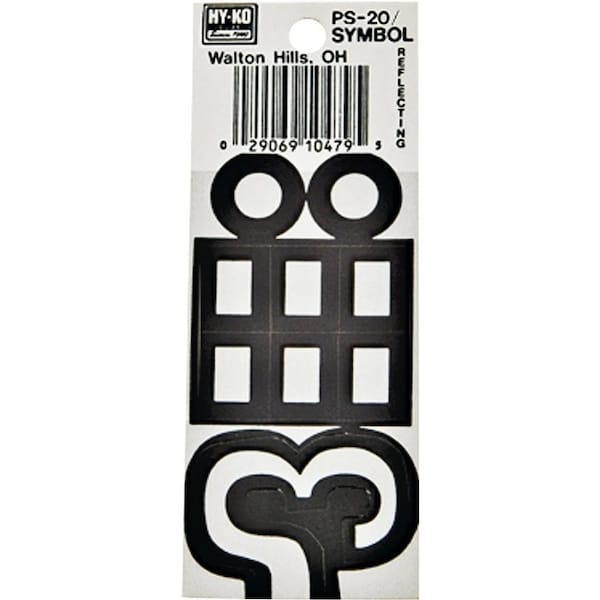 Weatherproof, waterproof. Ideal for boats, campers, trailers, snowmobiles and more. White reflective with black border. Includes 2 periods, 6 dashes and 1 ampersand on 1 panel.