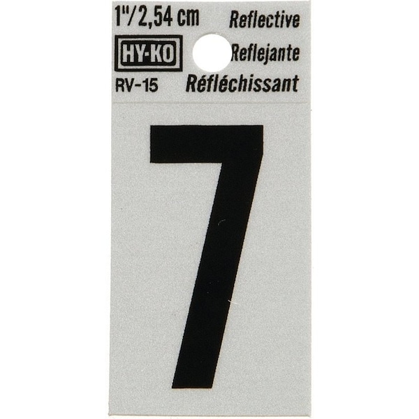 Reflective Sign, Character: 7, 1 in H Character, Black Character, Silver Background, Vinyl