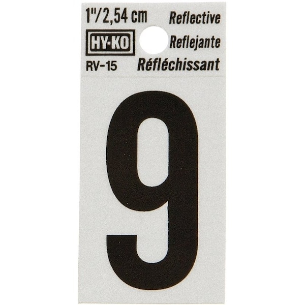 Reflective Sign, Character: 9, 1 in H Character, Black Character, Silver Background, Vinyl