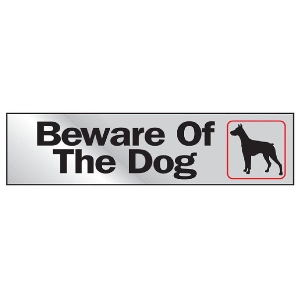 Sign, Beware Of The Dog, Silver Background, Vinyl, 2 x 8 in Dimensions