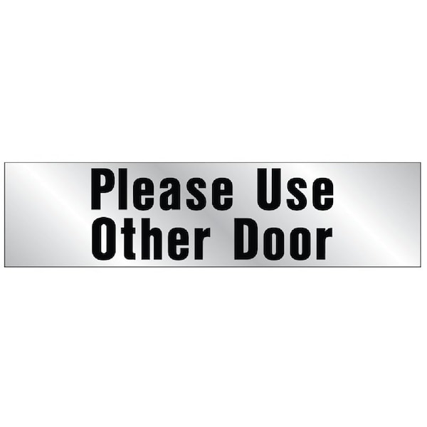 Sign, Please Use Other Door, Silver Background, Vinyl, 2 x 8 in Dimensions