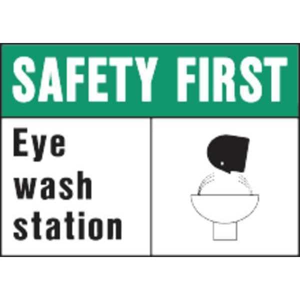 Sign,Safety First Eye Wash Station,PK5, Package Quantity 5