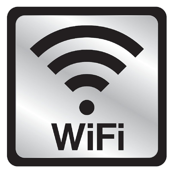 Sign with Frame, WiFi, Silver Background, Plastic, 4 in H x 4 in W Dimensions