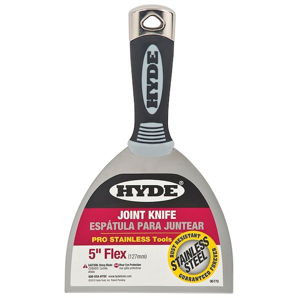 Premium quality joint knife features 5 in. flexible rust-resistant blade, double hollow-ground for the perfect flex-point plus durable hammer-head end for setting nails and screws. Superior grip has overmold cushioning for prolonged taping jobs.