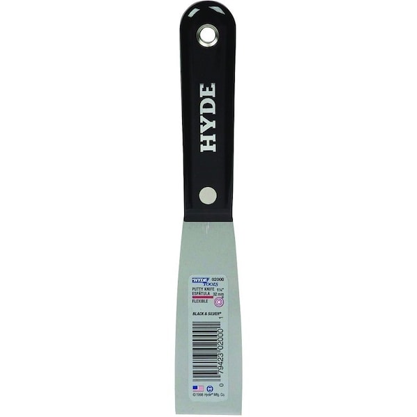 Black Silver 0 Putty Knife, 114 in W Blade, HCS Blade, Nylon Handle