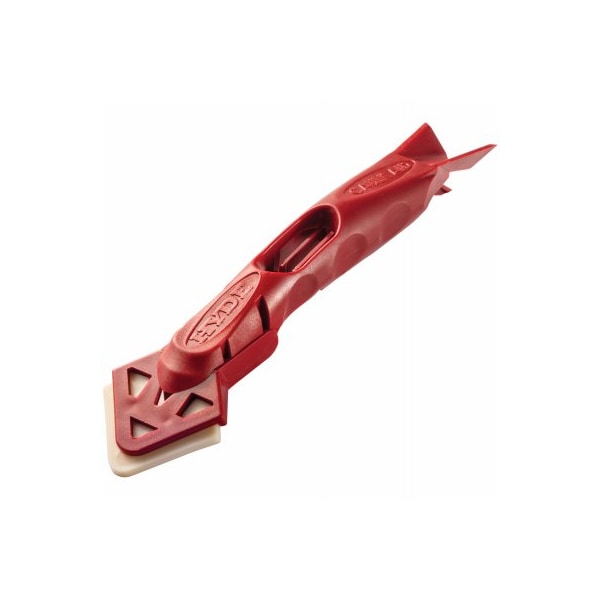 This multipurpose caulking tool lets your refresh old caulk with a single tool and s minimum of effort On one end are sharp, highimpact plastic blades designed to shave old caulk clean from tile or window mullions A sharp point removes any remaining caulk from crevices Once the surface is clean, the padded end of the tool will smooth a new caulk bead to a neat, consistent profile Also helpful A caulk tube cutter on the back of the tool slices open the replacement caulk tube