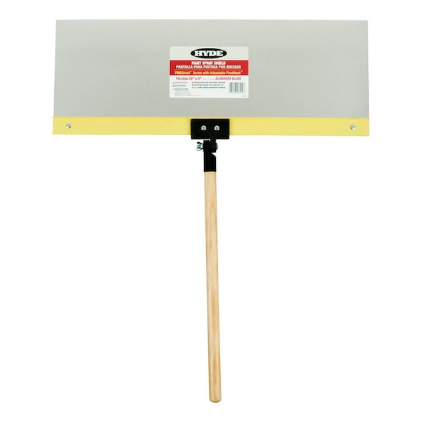Professional flexible aluminum spray shield blade with polystyrene runoff lip. Patented PivotNeck system adjusts blade to any angle. Includes 18in. Acme thread hardwood pole. Can also be used with extension pole. Blade Measures 24 in. x 9 in.