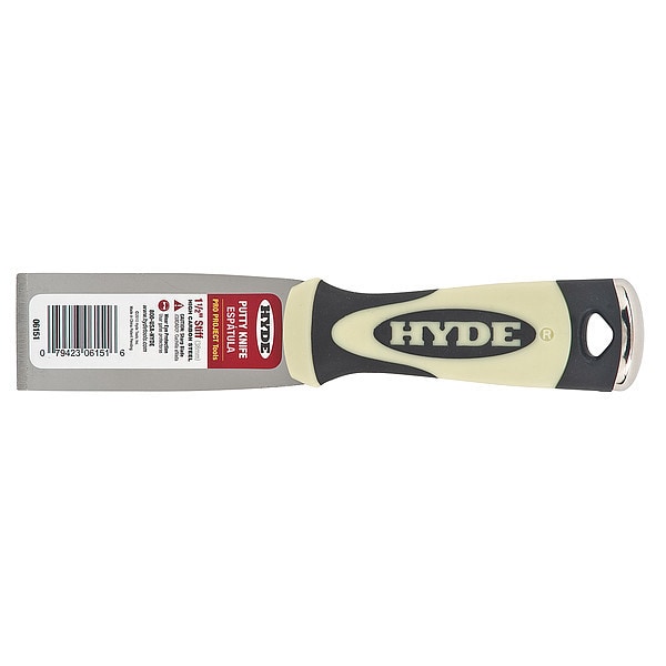 The Hyde 06151 Putty Knife is a versatile tool that can be used for scraping paint and removing putty. The carbon steel blade is strong, yet flexible enough to give you the control you need. The knife has an overall length of 8 in., with a blade width of 1 1/2 in. and a blade length of 3 1/2 in. The black/cream handle is made from polypropylene and TPE, giving it excellent durability. This stiff putty knife also has a hammer head design and soft grip handle that gives you better control over the tool. With its high quality construction, this Hyde Putty Knife will prove to be your most reliable tool when it comes to scraping paint or removing putty.