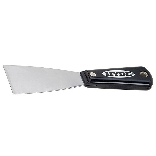 The HYDE 02300 Putty Knife is the essential tool for smoothing and scraping compounds. Made of carbon steel, this full-tang blade will not rust or corrode. The durable nylon handle ensures that you have a secure grip on the knife while working. The stiff blade has a length of 3 3/4 in., an overall length of 7 3/4 in., and a width of 2 in. It is guaranteed forever against defects in material and workmanship. The HYDE 02300 Putty Knife is perfect for applying, smoothing and scraping compounds.
