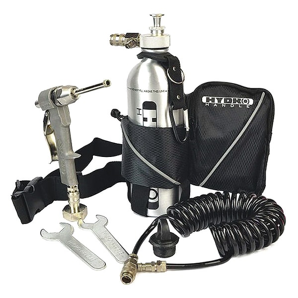 1/2 in to 5/8-11 in Arbor System, 8mm Compression Chuck, 8mm Diamond Pilot Bit, Aluminum Pressurized Water Bottle, Coiled Water Line, Quick Connect Garden Hose Adapter, Utility Belt, Wrench Assortment and Extra Seal Set