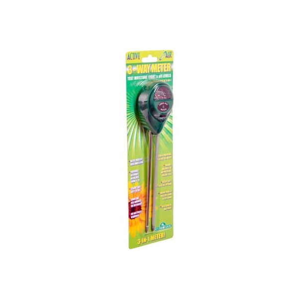 Active air mgmlp1 3-way meter test moisture, light, and ph levels gardeners can conveniently test their moisture, light, and ph levels with the handy active air 3-way meter. Moisture readings register on a scale of 0 dry to 10 moist; light readings range from 0 low light to 2000 very strong light; accurate ph readings range between ph 3.5 and 8. The durable, easy-to-read tester is suitable for indoors or out and needs no batteries to operate. Remove from soil and clean prongs after each use to ensure the moisture meter stays in top performance shape.