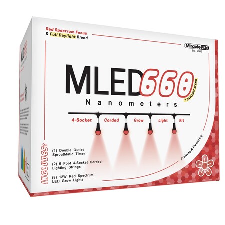 660 Nanometer Indoor Grow Light Kit Red Spectrum 12W Repl 150W 4-Socket Corded Fixture w/Timer, 2PK
