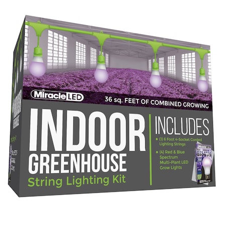 4-Socket Greenhouse in a Box Grow Light Kit Blue Spec 9W Replace 150W Grow Bulb, Timer, 2PK