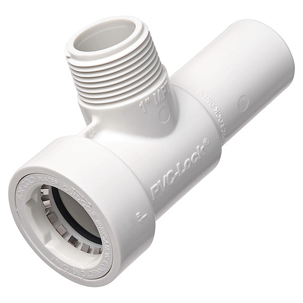 Manifold Tee, Connection 1 In. SPG x 1 In. SOC x 1 In. MPT, Material PVC, For Use With Valve, Height 3.125 in, Width 2.125 in, Product Type Manifold Tee, Max. Working Pressure 150 psi, Locking Locking